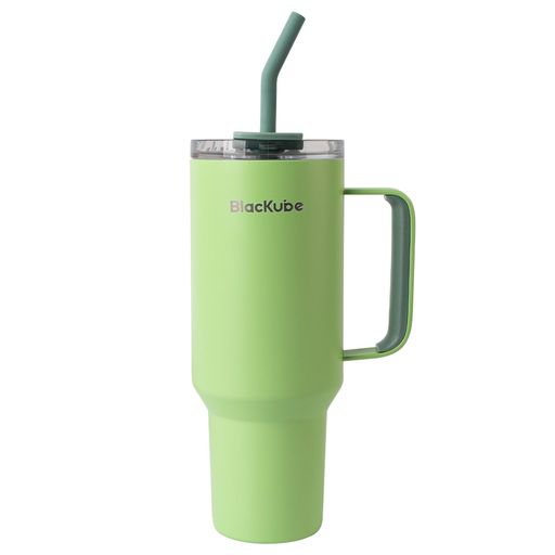 BLACKUBE タンブラー 大容量 1200ML 真空断熱 24時間保冷保温 こぼれない ストロー付きタンブラー ハンドル&蓋付き 広口 おしゃれ 清潔簡単 アウトドア/職場用 若葉グリーン