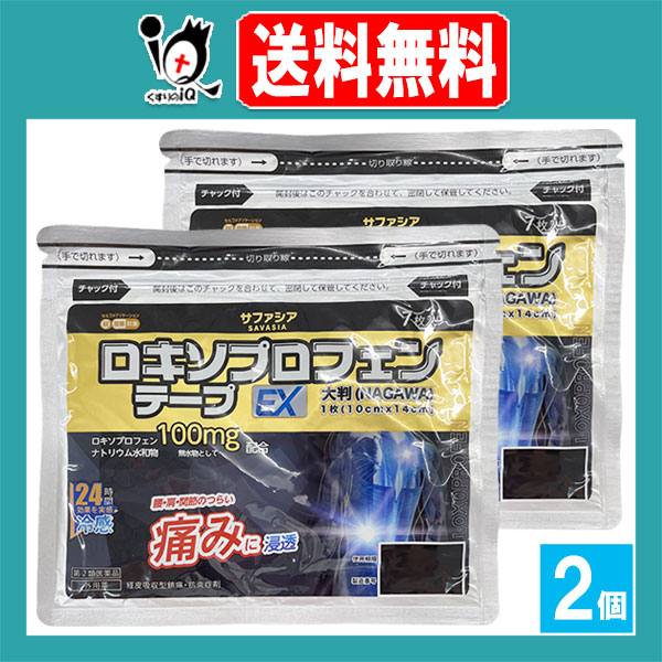 【第2類医薬品】★ロキソプロフェンテープEX大判 ラミネート袋(箱なし) 7枚入×2個セット【ナガワ薬品】NAGAWA サファシア 腰・肩・関節の痛みに浸透 24時間効果を実感 冷感タイプ ロキソプロフェン テープ剤 シップ 鎮痛消炎薬 鎮痛消炎剤