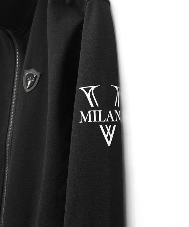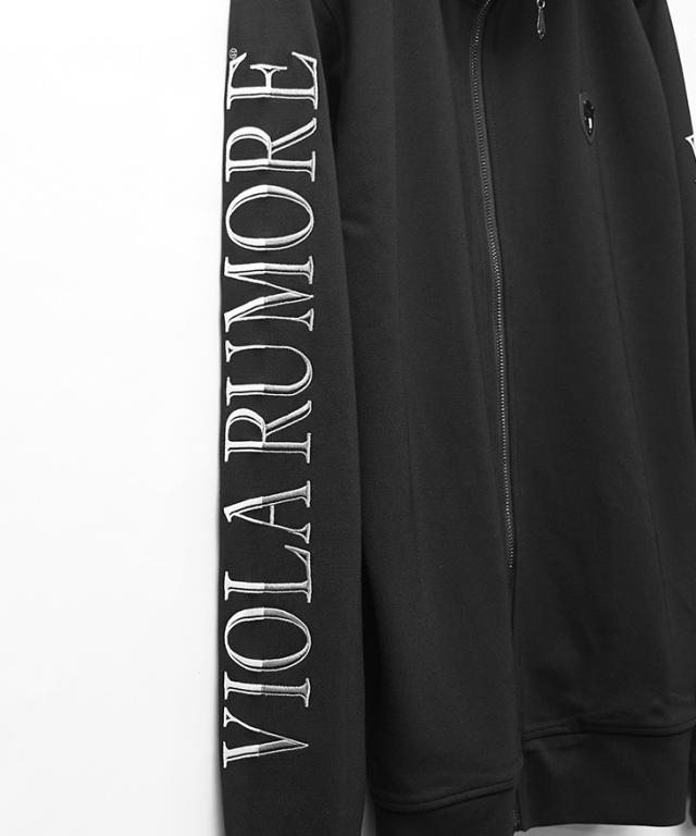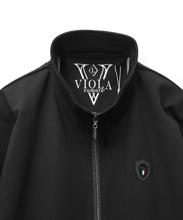 VIOLA rumore(ヴィオラ)『ストレッチフルジップジャケット』【ストレッチフルジップジャケット】■Design/デザイン動きやすさと上品な雰囲気を兼ね備えた、都会的なムードを漂わせる一枚。スタンドカラーのシャープなラインと細身シルエットが、すっきりとしたスタイリッシュな印象を与えます。胸元にはブランドのラバープレートをさりげなくあしらい、ミニマルな中にアクセントをプラス。さらに左腕にはブランドロゴのラバープリントを配置し、スポーティな要素を引き立てています。両サイドにはコンシールファスナー付きのポケットを備え、シンプルなデザイン性を損なわず機能性を確保。同素材のストレッチ切替パンツ(商品番号:69018)と合わせれば、セットアップとしても着用可能。
