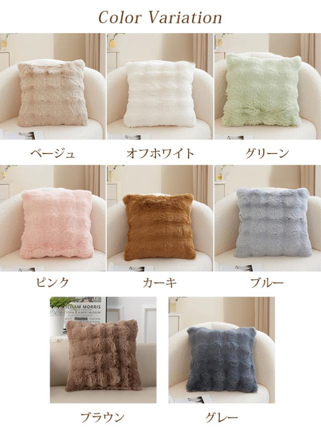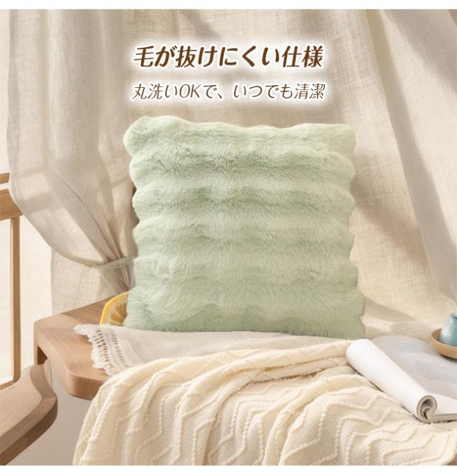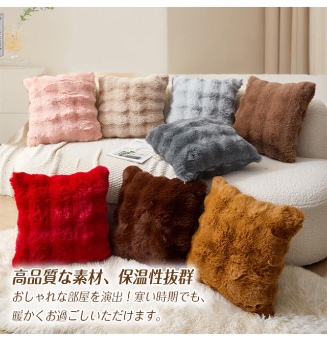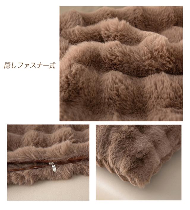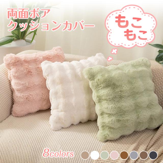 クッションカバー クッション 両面ボア フェイクファー フェイクラビットファー 洗える あったか カバー 無地 シンプル 起毛 秋 冬 ボア ファー 暖かい 厚手軽量 洗える