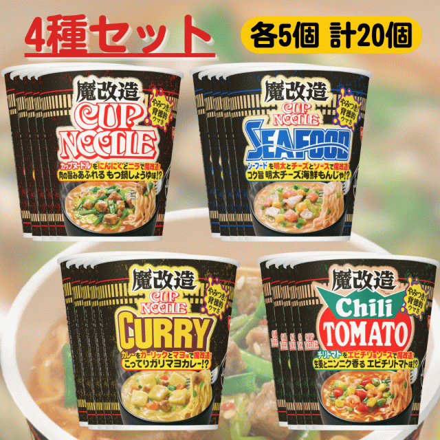 日清 魔改造カップヌードル 最短賞味期限2026年2月8日 4種セット 各5個 計20個セット レギュラー シーフード カレー チリトマト 箱 箱買い ケース 詰め合わせ まとめ買い 業務用 魔改造 カップラーメン ヌードル カップ カップ麺 ヌードル アソート ラーメン インスタント