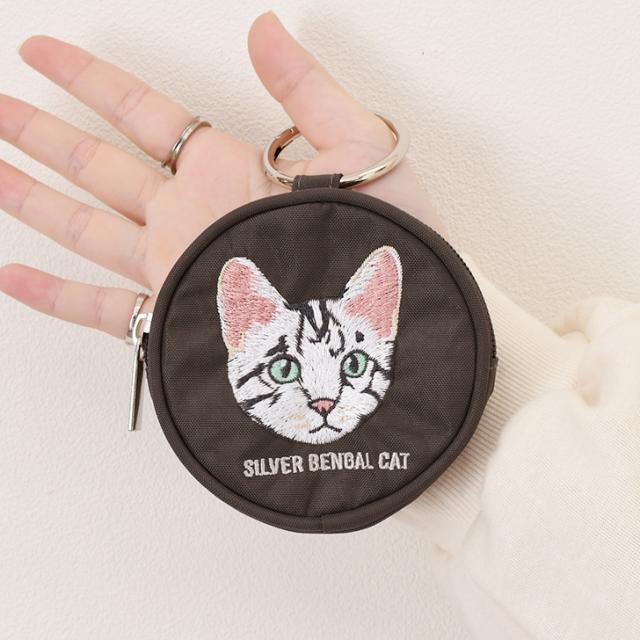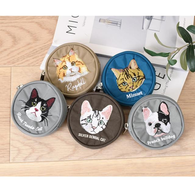 新作 ポーチ 小物入れ 小さめ カラビナ コインケース レディース アニマル 刺繍 ミニ財布 小銭入れ キーケース ファスナー 丸型 ミニ ネコ イヌ