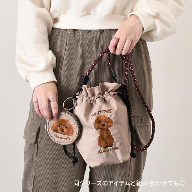 アニマル刺繍がポイントの可愛い丸ポーチ