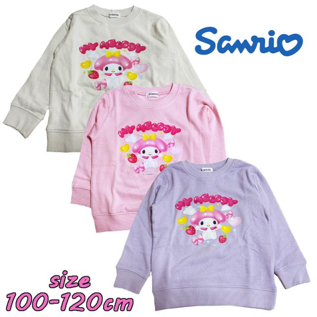 メール便送料無料 サンリオ マイメロディ スウェットシャツ 裏毛起毛 裏起毛 プリント キッズ 女児 EU8985