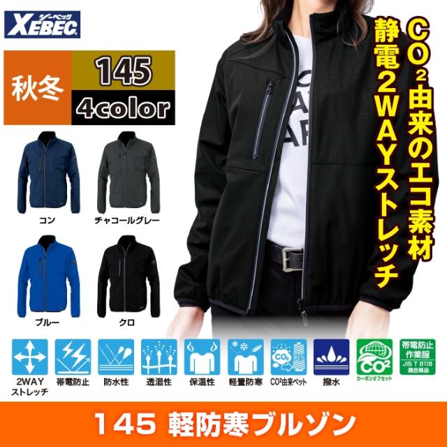 ジーベック XEBEC 作業服 防寒着 145 軽防寒ブルゾン SS-LL 秋冬 作業着 撥水 保温 JIS帯電