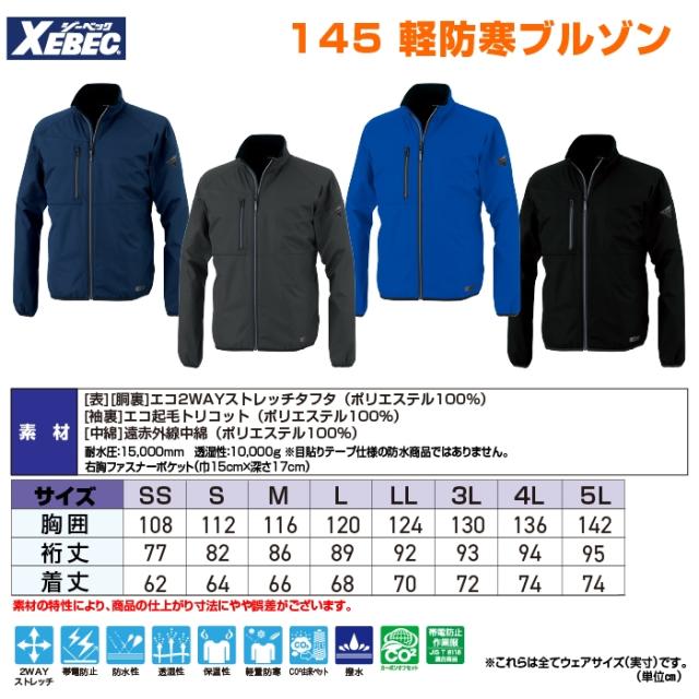 ジーベック XEBEC 作業服 防寒着 145 軽防寒ブルゾン 3L 秋冬 作業着 撥水 保温 JIS帯電
