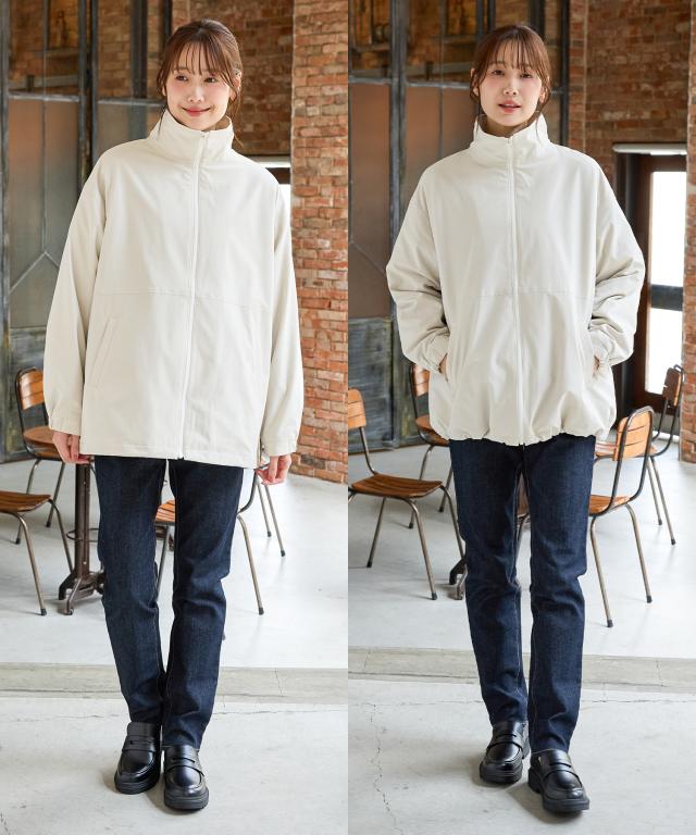 裾にはストッパー付きのゴム入りで、シルエットチェンジ可能。