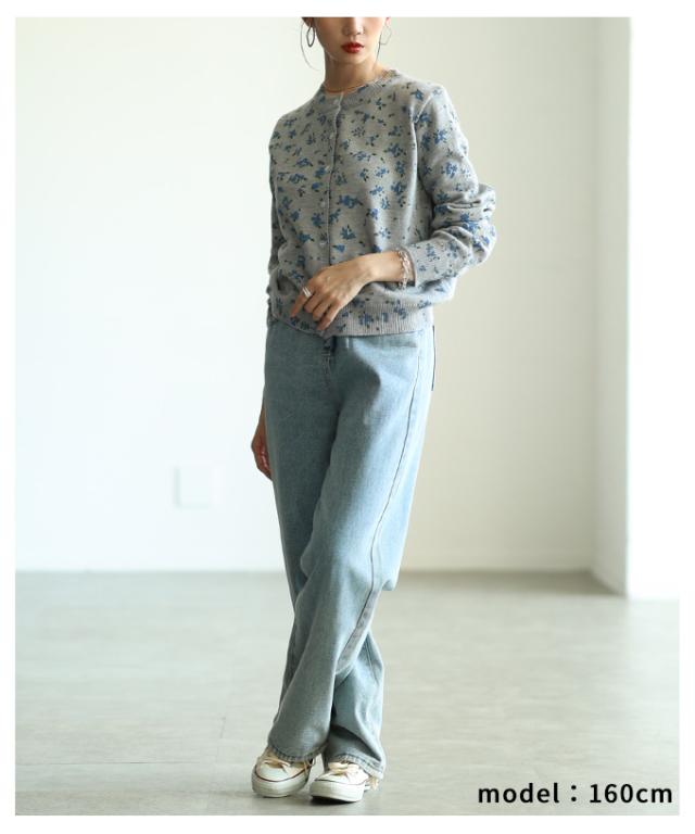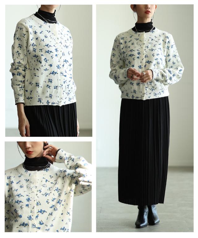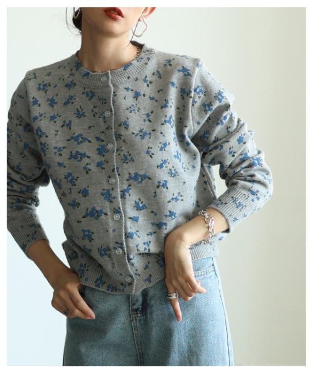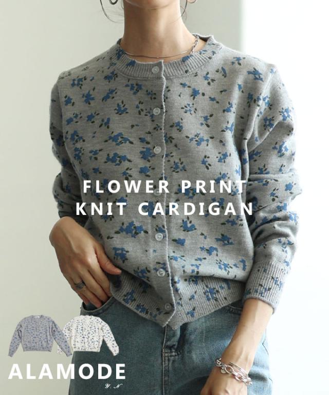 冬新作 愛らしさ感じるフラワープリントニットカーディガン レディース ファッション トップス カーディガン ニット 羽織り 花 秋服 大人可愛い 20代 30代 40代 レディースファッション カジュアル 体型カバー おしゃれ きれいめ ママ アラモード alamode aljun-1010s