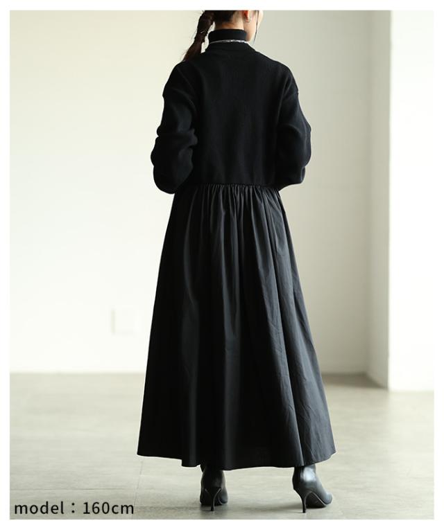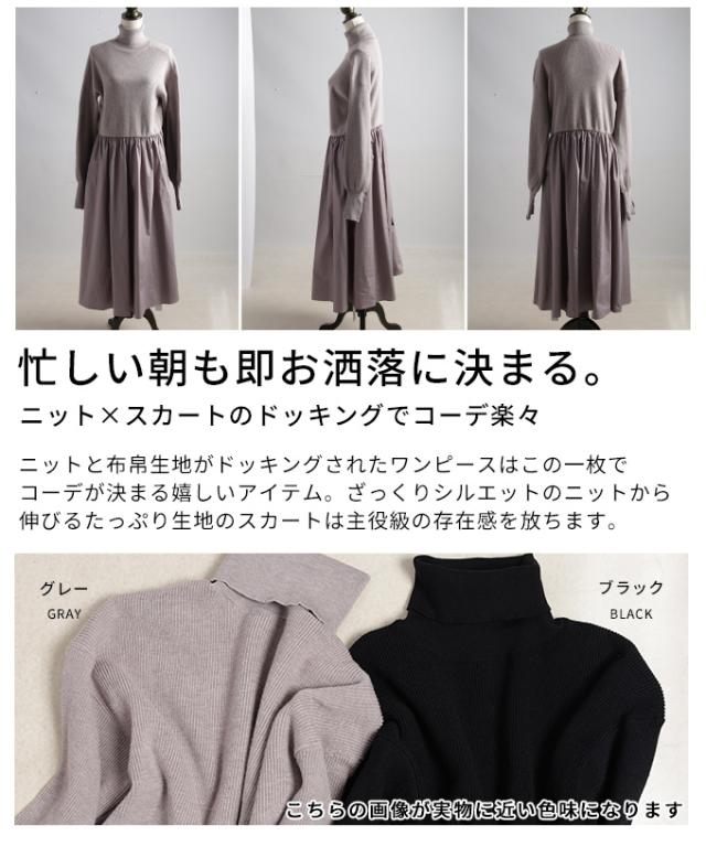 冬新作 忙しい朝も即オシャレに決まるドッキングフレアワンピース レディース ファッション ワンピース ブラック 黒 グレー 秋服 春 大人可愛い 20代 30代 40代 レディースファッション カジュアル 体型カバー おしゃれ きれいめ ママ アラモード alamode mode-10080