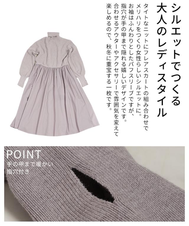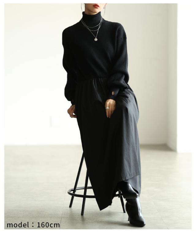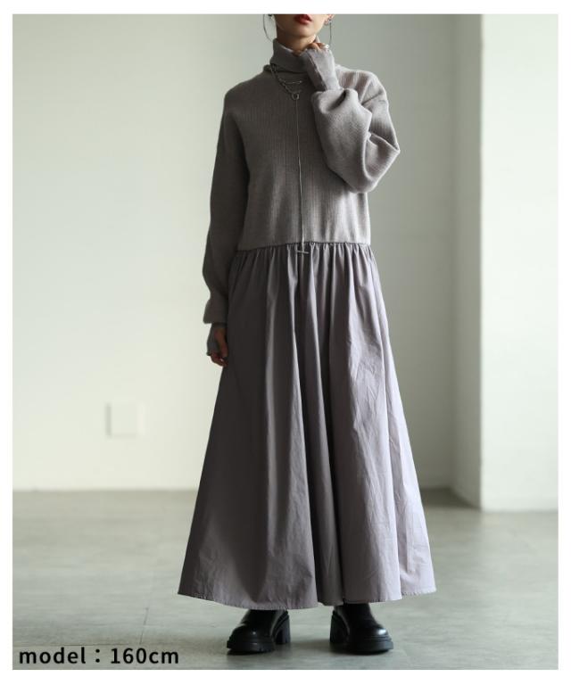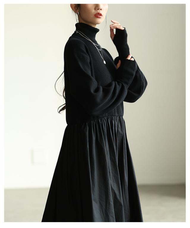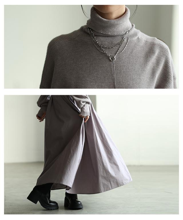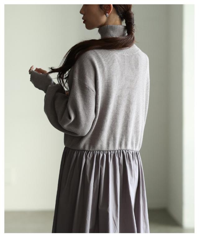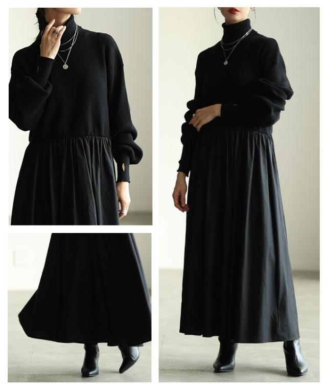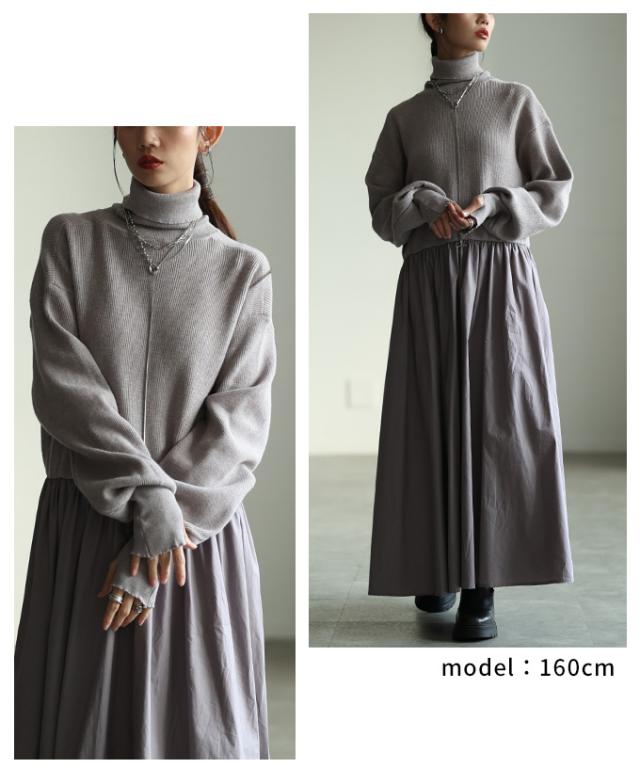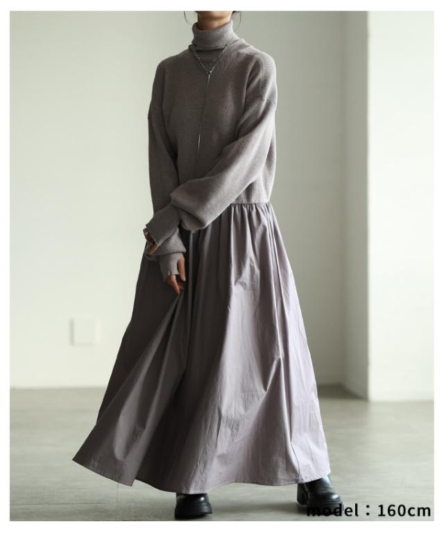 特徴: ニット 異素材 ドッキング タートルネック フレア 綿 コットン