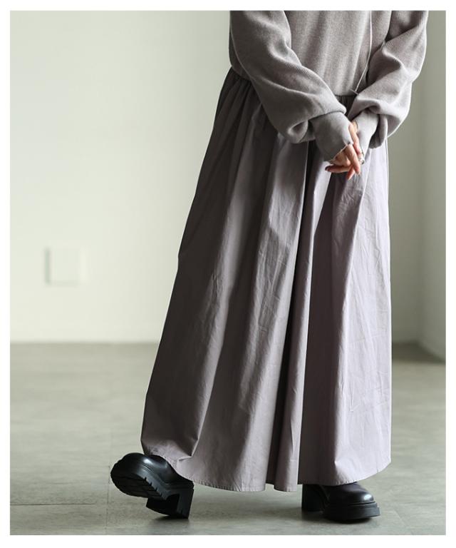 着丈は床につきます。全体的に私には大きいサイズ感でした。首はタートルネックで一折しても顎下にたまるくらい長めです。袖はのバスト手が隠れますが長めのリブの袖口で親指を入れる穴があり、指を入れると手の甲が隠れるくらいです。ニットとスカートがドッキングしたデザインで脇ぐりも身幅も余裕がありました。ニットはやわらかく伸縮性があり、スカートは少し張りのある生地で肌触りは良かったです。
