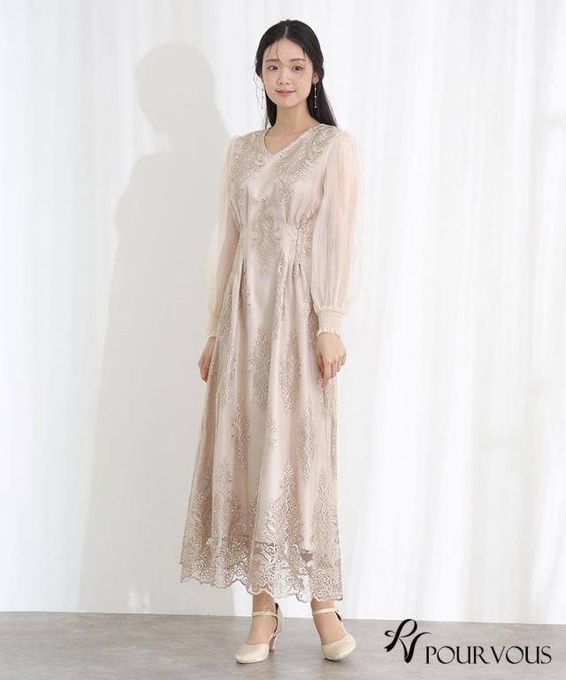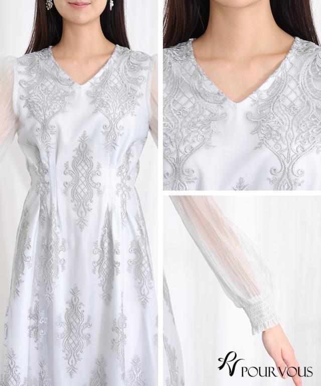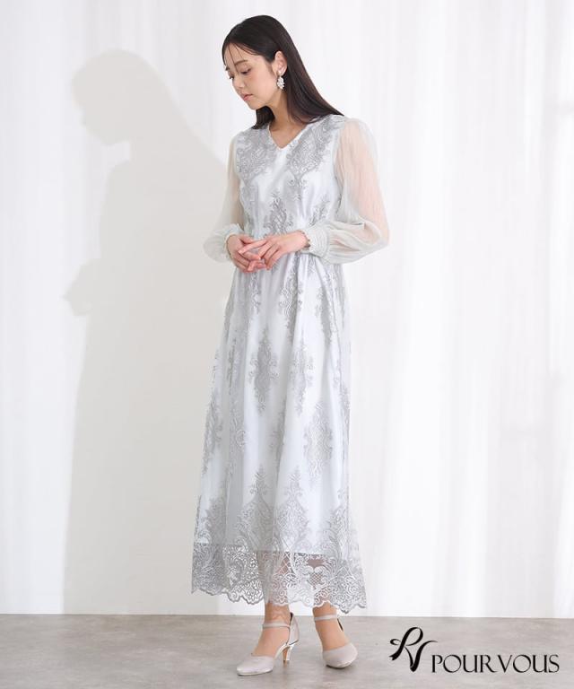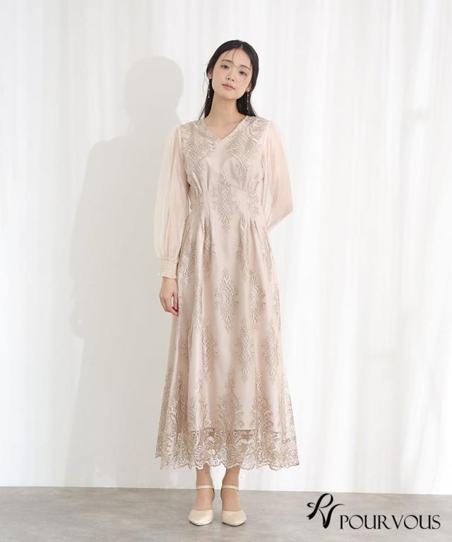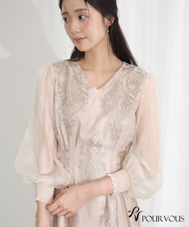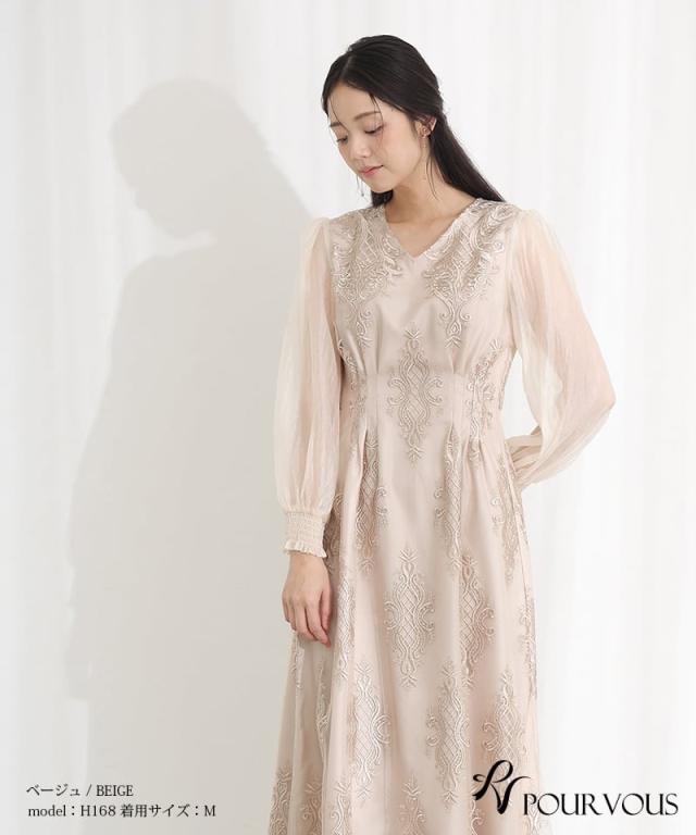 クラシカルエンブロイダリードレス【492251822】10代・20代・30代・40代・50代・ドレスワンピ・フォーマルワンピ・パンツドレス・服装・ワンピース・ドレスカジュアル・ブランド・七分袖・長袖・ロング・膝丈・薄手・厚手・無地・刺繍・脚長効果・伸縮性・キレイめ・着やせ・体型カバー・スタイルアップ・レース・リボン・ドレープ・小さいサイズ・3Lや4L・かっこいい・かわいい・即日発送・送料無料・結婚式・婚活・披露宴・顔合わせ・発表会・演奏会・二次会・同窓会・お呼ばれ・食事会・謝恩会・親族・七五三・お宮参り・冠婚葬祭・弔事・女子会・韓国・デート・入学式・卒業式・入園式・卒園式・ママ・ピアノ・マタニティー・セレモニー・セレブ・パーティー