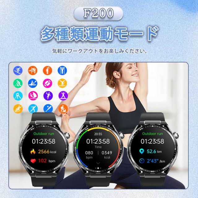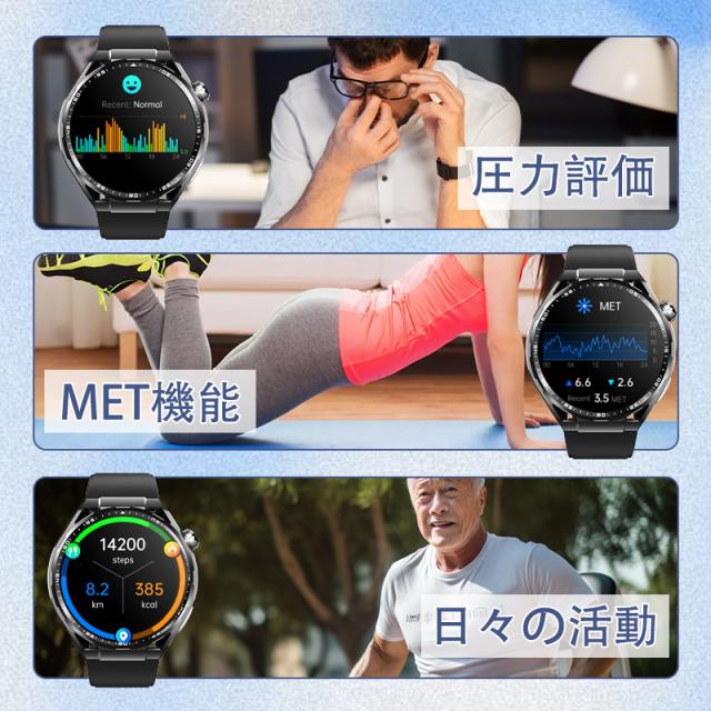 【Bluetooth5.3通話機能&音声アシスタント】スマートフォンとBluetooth5.3接続すれば、電話の受信と応答を行うことができます。大切な電話を逃すことはありません。※※専用アプリと接続するとス マートウォッチで直接に電話をかけることや着信拒否も実現可能。運転中でも運動中でも両手を解放し、より効率的な通話ができます。音声アシスタント機能を搭載しており、スマートウォッチに話しかけるだけで音楽をかけてくれたり、アラームを設定してくれたり、スポーツモードを開始したりするなどの操作を実行できます。