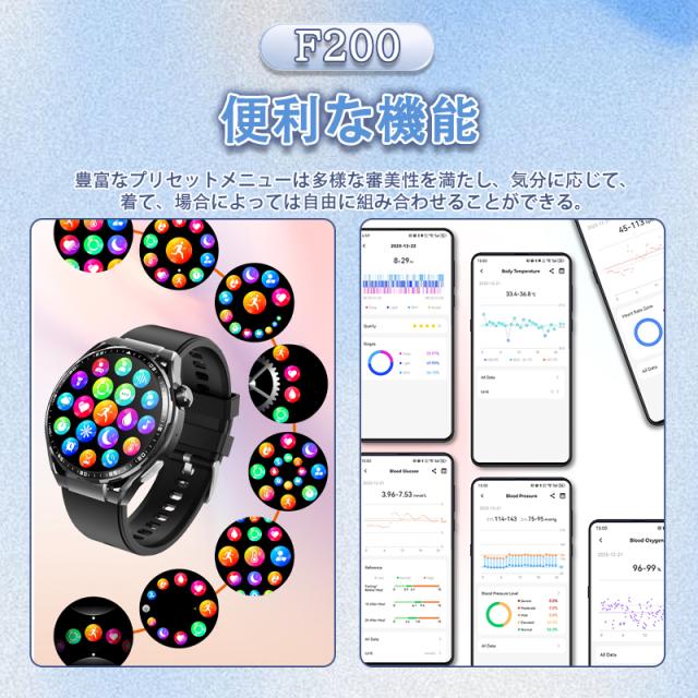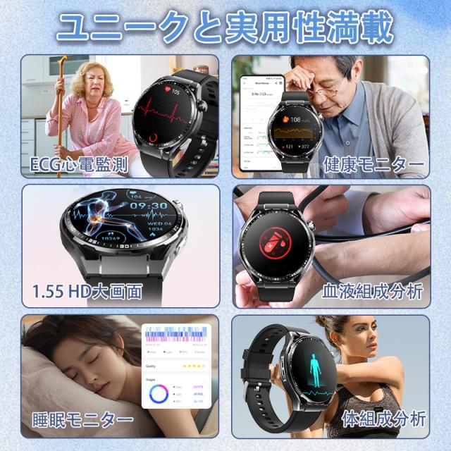 即日発送 スマートウォッチ 血糖値 血圧測定 ECG心電図 血中酸素 BMI体組成 HRV心拍数 睡眠管理 体温検知 月経周期トラッキング ストレス監視 通話機能付き 活動量計 歩数計 カロリー消費 走行距離 腕上げ点灯 SOSモード 日本語取扱説明書