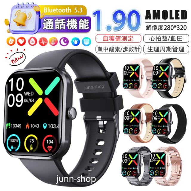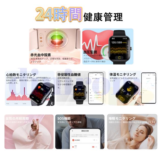即日発送 スマートウォッチ 血糖値 血圧測定 心電図 血中酸素 心拍数 睡眠管理 体温検知 月経周期トラッキング ストレス監視 通話機能付き 活動量計 歩数計 カロリー消費 走行距離 腕上げ点灯 日本語取扱説明書