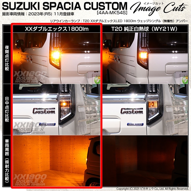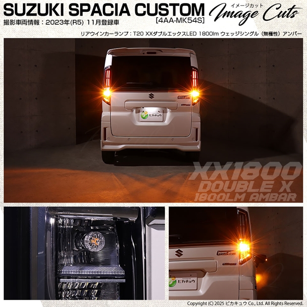 ピカキュウ,LED専門店,LEDバルブ,SMD,LED,T20S,T20シングル,ターンシグナルランプ,ハイフラ抵抗内蔵LEDウインカーバルブ,ハイフラ不要,抵抗不要,ポン付け,アンバー,全光束1800lm,XX,ダブルエックス,スズキ,SUZUKI,スペーシアカスタム,SPACIA CUSTOM,MK54S,MK94S