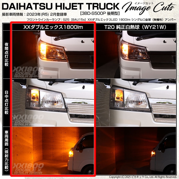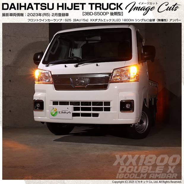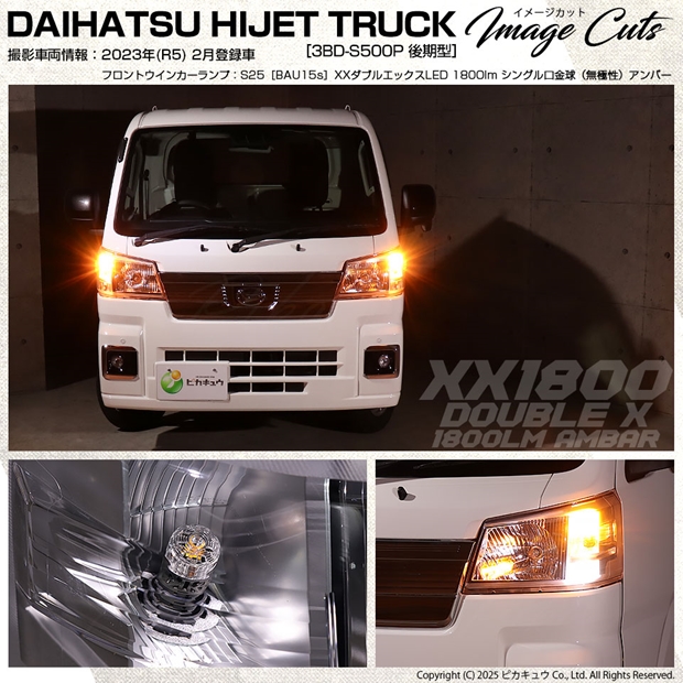 ピカキュウ,LED専門店,LEDバルブ,LED,S25シングル,S25s,BAU15s,ターンシグナルランプ,ハイフラ抵抗内蔵LEDウインカーバルブ,ハイフラ不要,抵抗不要,ポン付け,アンバー,全光束1800lm,XX,ダブルエックス,ダイハツ,DAIHATSU,ハイゼット,ハイゼットトラック,HIJET TRUCK,S500P,S510P