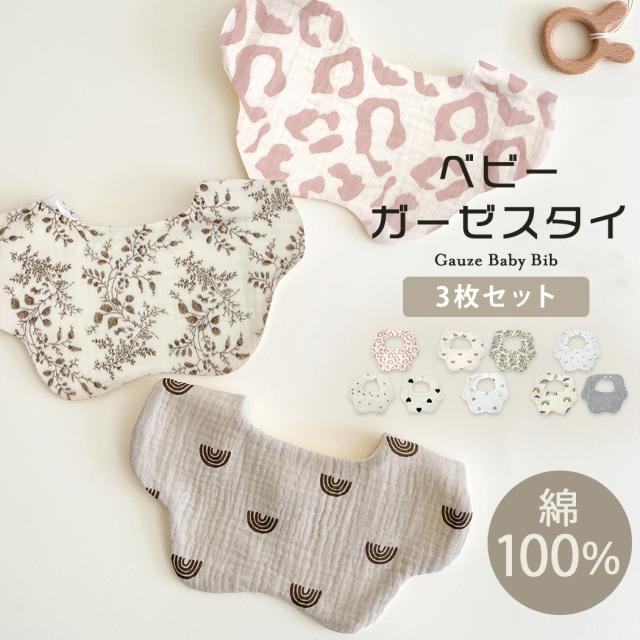 スタイ 3枚 セット 男の子 女の子 よだれかけ 子供 ベビー ガーゼ 3重 吸水性 通気性 軽い 柔らか 2段階調節 スナップボタン コットン ナチュラル柄 赤ちゃん おしゃれ 出産祝い ギフト プレゼント よだれカバー 綿 シンプル 食事 保育園