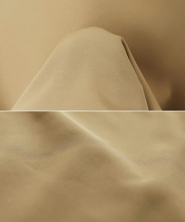 ほんのり光沢のあるポリエステル素材で、薄手ながらもハリ感があり、サラッとシャツ感覚で気軽に羽織れる着心地が◎