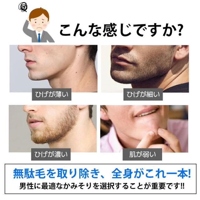 男性用電気シェーバーは、頭、顔、首、顎のすべての方向の輪郭に自動的に適応し、肌に優しくカミソリします。