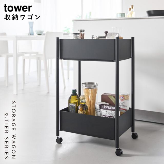 小物トレー付き収納ワゴン 2段 タワー山崎実業 tower ワゴン キャスター付き サロン 2段 スリム おしゃれ モノトーン ホワイト ブラック 10183 10184 メーカー直送