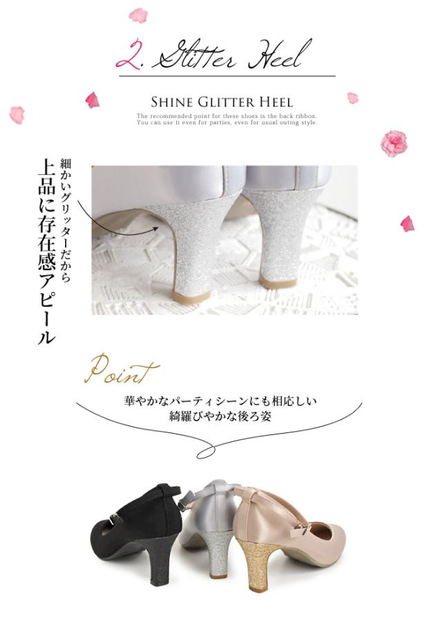 贅沢に煌めくグリッター。エレガントに輝く上品な足元へ。特別な日のドレスアップにぴったり。大好評極ふわシリーズにパーティパンプス登場!衝撃性、弾力性、復元性、前滑り、ブレを防止する機能性抜群の成形型アーチインソールを搭載し、これまでにないフワフワなインソールクッションが実現しました。ドレスアップにはもちろんのこと、普段のコーディネイトでもお使いいただけます。ストラップは取り外し可能な2way仕様です。