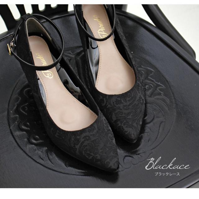 パンプス 結婚式 ストラップ 痛くない ウエディング 二次会 パーティ 太ヒール 6センチヒール レース サテン アンクルストラップ 黒 19038 極ふわっ Parade 靴 レディース
