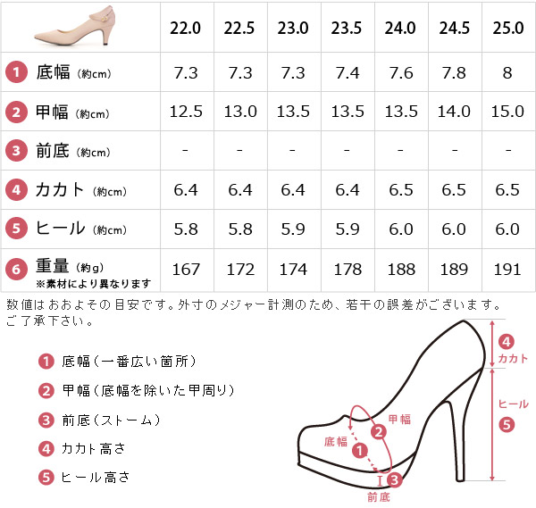 | 22.0cm、22.5cm、23.0cm、23.5cm、24.0cm、24.5cm、25.0cm、25.5cm、26.0cm |