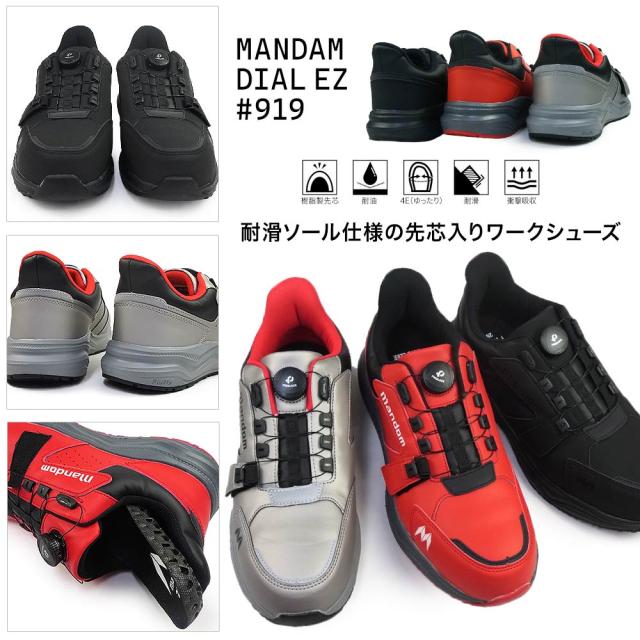 【25秋冬新作】 安全靴 先芯入り ローカット メンズ スニーカー 4E 樹脂先芯 マンダム DIAL EZ #919 幅広 丸五MANDOM DIAL EZ