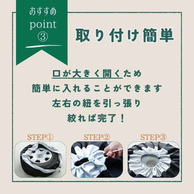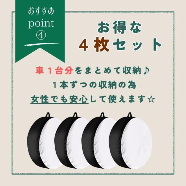 タイヤカバー 屋外 屋内 防水 袋 車 軽自動車 普通自動車 SUV セダン コンパクト ハッチバック 4WD ミニバン ワンボックス ステーションワゴン 軽バン 4本 保管カバー 収納 タイヤ保管 保管袋 持ち運び タイヤ保管 洗車 簡単 守る 汚れない 長持ち 迷わない