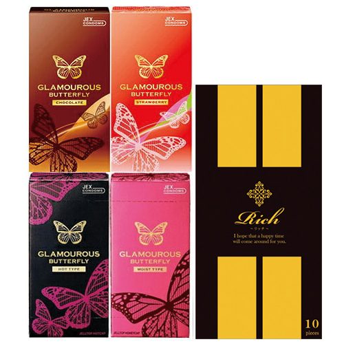 「あす着」「ネコポス」ジャパンメディカル Rich(リッチ)コンドーム Mサイズ (10個入) + ジェクス グラマラスバタフライ (ホット500・モイスト500・チョコレート・ストロベリー選択)セット ※完全包装でお届け致します。「送料無料」