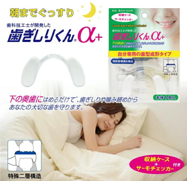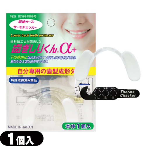 「メール便(日本郵便)」 歯ぎしりくんα+(アルファプラス) 1個入り - 簡易ケース・サーモチェッカー付!「はめて寝るだけで不快な音、歯の損傷を防ぐ奥歯保護具」「送料無料」