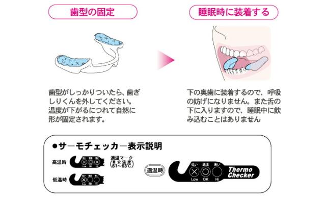 | 商品説明 | ● はめて寝るだけで不快な音と、歯の損傷を防ぐ奥歯保護具。 ● 睡眠時の歯ぎしりや噛み締めは、起きている時の約2倍もの力が歯やあごにかかります。 ● 歯ぎしりくんは、下の奥歯に装着し自分の歯型に成形するのでmぴったりフィットします。 ● 薄くコンパクトな構造とスムーズなラウンド処理を行った形状により、睡眠時に異物感を大幅に軽減しています。 ● 下の奥歯に装着するので呼吸の妨げにもなりません。また、舌の下に入りますので、睡眠中に飲み込むことはありません。 ● 噛む部分にエラストマを使用し、二重構造とすることで耐久性を高めています。 |