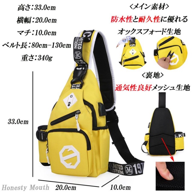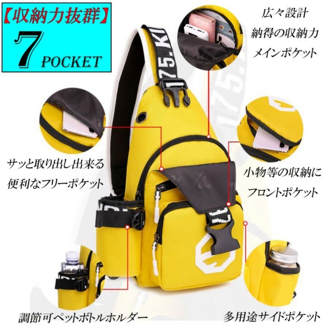 【スポーツから散歩まで】 音楽を楽しめるようにイヤホン穴が空いており、充電も可能なUSBポート付。斜めがけのボディバッグなのでリュックよりも腕の可動域が広く軽量の為、ちょっとした作業やウォーキング、釣り、簡単な登山、犬の散歩にもぴったり。サイドポケットはペットボトルや水筒を入れて固定することができます。