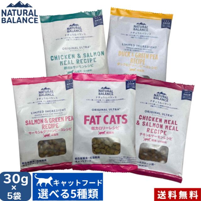 ナチュラルバランス サンプル お試し 選べる5種類 150g (30g×5袋セット) 正規品 キャットフード 猫 アレルギー対応 Natural Balance おためし 穀物不使用 グレインフリー 無添加 【送料無料】