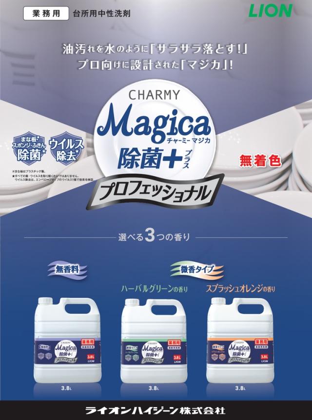 【送料無料(沖縄を除く)】ライオン CHARMY Magica(チャーミーマジカ) 除菌+ プロフェッショナル 微香ハーバルグリーンの香り 3.8L