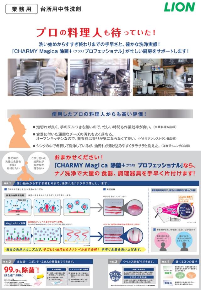 | 商品名 | 業務用 台所用洗剤 食器洗剤 CHARMY Magica(チャーミーマジカ) 除菌プラス プロフェッショナル 微香ハーバルグリーンの香り |