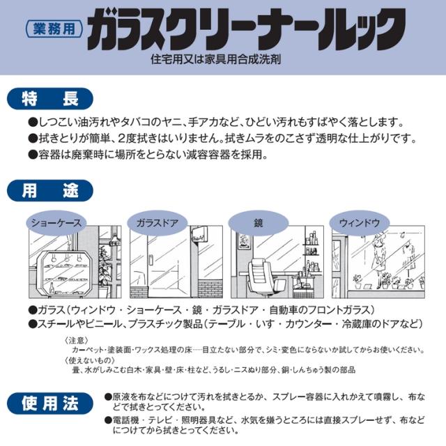 | 商品名 | 業務用 窓ガラス用洗剤 液体ガラスクリーナールック | |