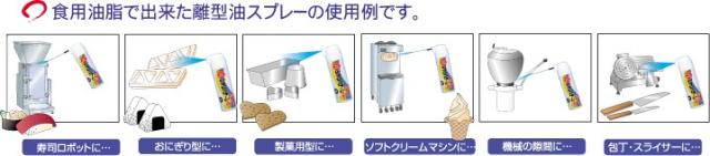 ●魚・肉・野菜・練り製品・パン・のり巻き・冷凍食品などの加工時の包丁・スライサーへの付着防止。
