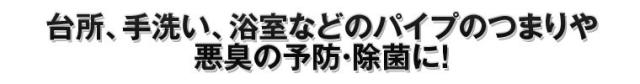 ●台所・手洗い・浴室等の各種排水管内に付着した、油脂類・ぬめり・毛髪その他有機質汚れの除去、詰まり、悪臭の予防。除菌。