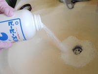 そのまま30分〜1時間、あるいは一晩放置した後、多量の水で押し流してください。 ◆効果が不十分な場合は、放置時間を長くして上の作業を繰り返してみて下さい。 ◆詰まりや悪臭防止のためにも月2回程度の定期的洗浄をお勧めします。 |