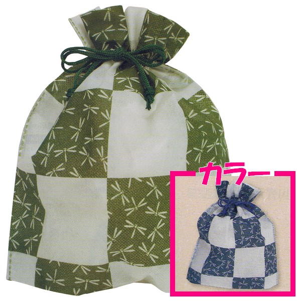 | 商品名 | 業務用 不織布巾着袋 和風柄 チェック蜻蛉(とんぼ)柄 |