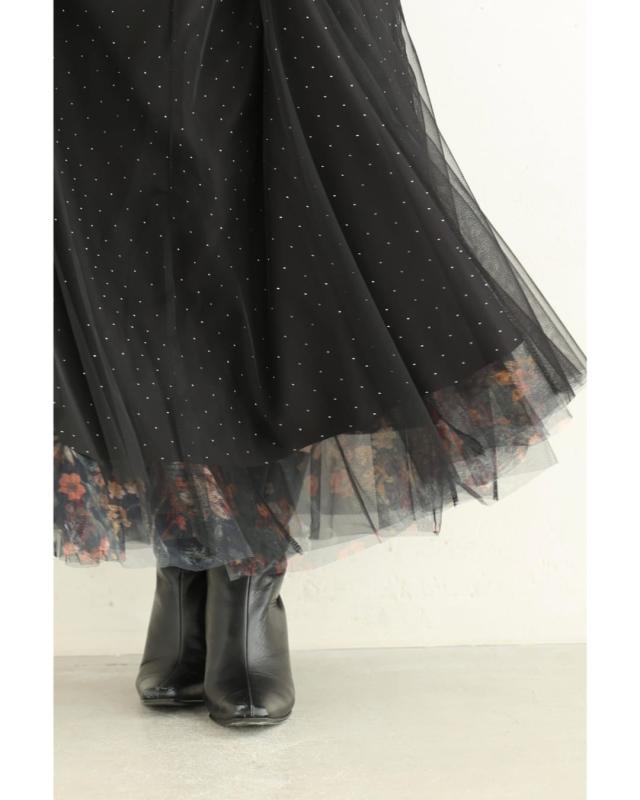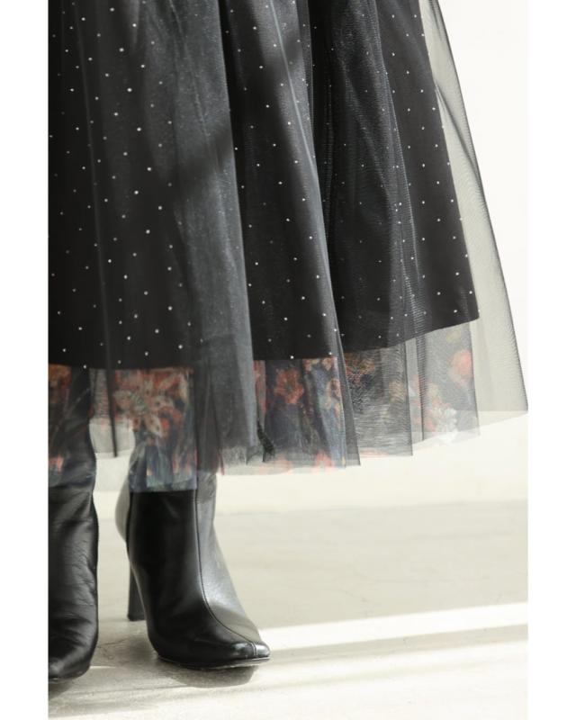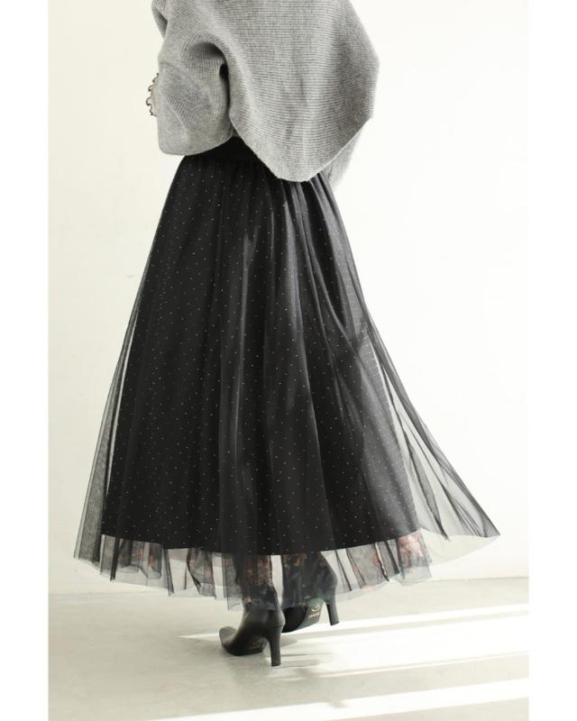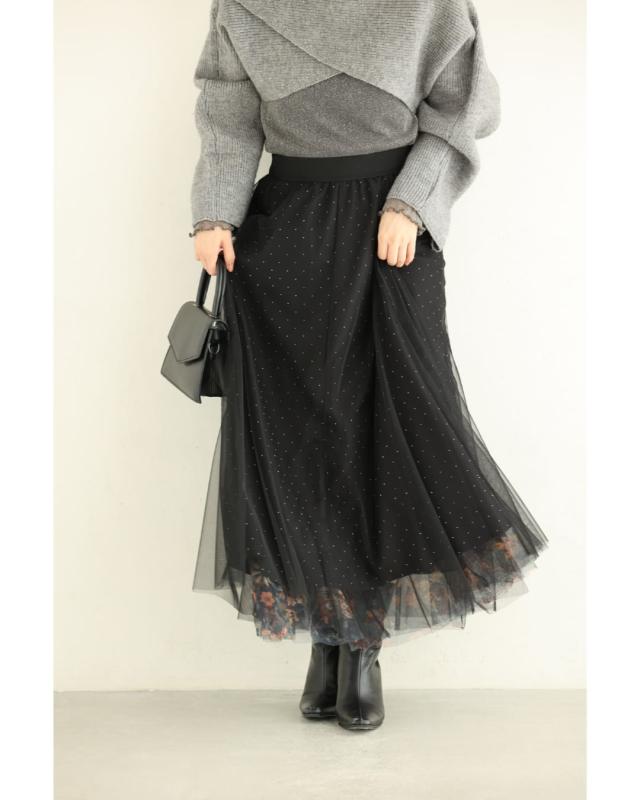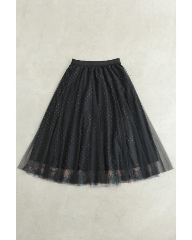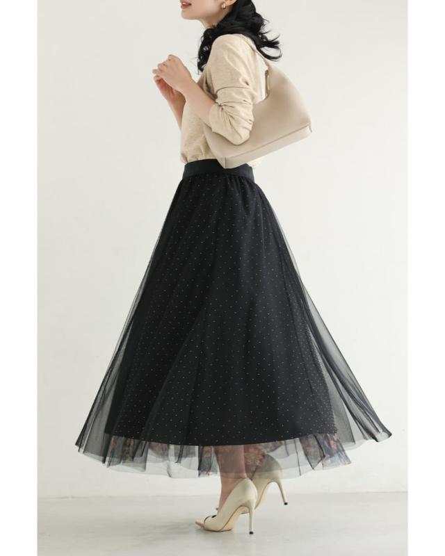 w61555ps 新作 新着 再入荷 CAWAII FRENCHPAVE フレンチパヴェ エレガント ベーシック カジュアル 可愛い かわいい カワイイ おしゃれ オシャレ お洒落 個性 個性的 定番 ベーシック 大人かわいい 大人可愛い 上品 女性らしい デザイン スタンダード ナチュラル きれいめ キレイめ シンプル フェミニン レディース レディースファッション 大人 ママ ミセス 30代 40代 50代 60代 黒 印象変わる 花 ビジュー リバーシブル チュール スカート ウエストゴム 総ゴム フレア 膝下 ひざ下 ふんわり ラインストーン S M L 2L XLフリーサイズ フリー 小さめ 小さいサイズ 低身長 痩せ ほっそり 小柄 細身 標準サイズ 大きめシルエット 大きい 大きめ ビッグシルエット ゆったり F サイズ自由 春 夏 秋 春服 春物 秋服 秋物 冬服 冬物 体型カバー 楽ちん 楽チン ラクラク 楽々ブラック 黒色 総柄 花柄 フラワー ドット 水玉 日常着 普段着 日常使い おでかけ 旅行 女子会 デート 買い物 大人女子