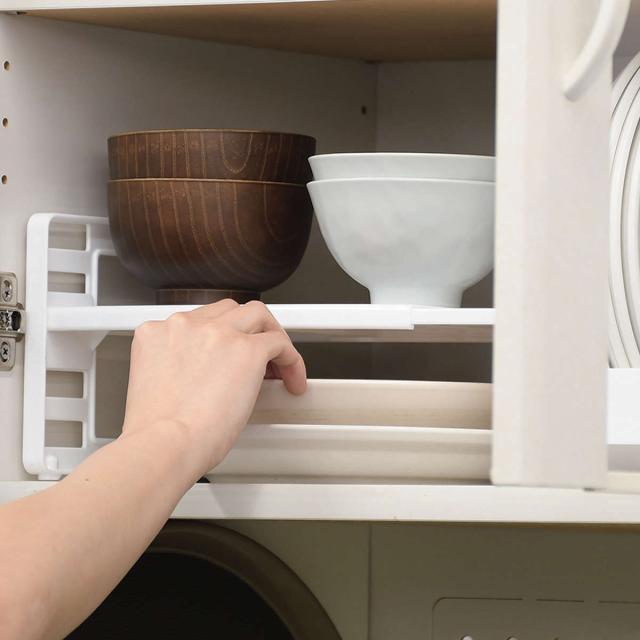 食器棚のスペースを有効活用できる伸縮式プレートラック