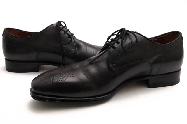 職人のハンドパティーヌによって美しい色彩のカーフレザーをまとった4アイレットダービー。イタリアらしい芸術的なモデルで、カジュアルは勿論のこと、ネイビースーツに合わせてもオシャレ。甲の部品にあたるアッパー部分と靴底にあたるソール部分を縫い合わせるイタリアの伝統的製法「マッケイ製法」を採用。構造がシンプルなため、軽くて底の返りが良いのが特徴です。