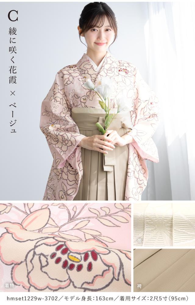 SOUBIENのプライベートブランド『floro by SOUBIEN』(フローロ)の二尺袖着物を合わせた華やかな袴セットです。