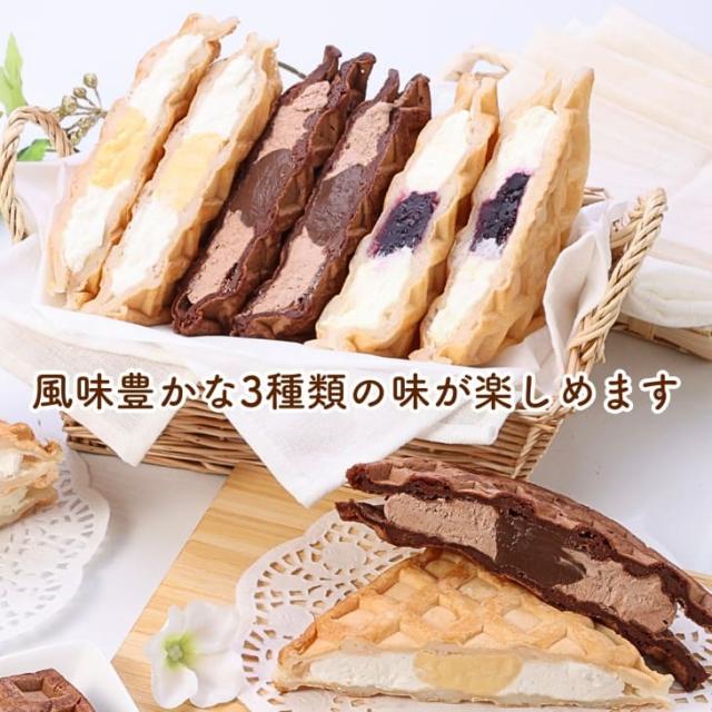 ホワイトデー おうちdeボンマルシェ【もちもちワッフル6個セット】(6個入 / カスタード2個・ブルーベリーチーズケーキ2個・ショコラ2個) スイーツ 洋菓子 お菓子 プレゼント 誕生日 詰め合わせ かわいい 冷凍 アイスケーキ ワッフルケーキ 手土産 内祝い 人気