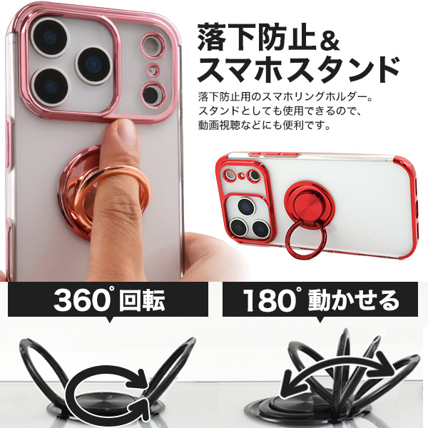 スマホケース iPhone17Pro スマホリング付き メタルカラー バンパー ソフトクリアケース ソフトケース アイフォン17プロ 背面 保護 カバー 光沢 無地 シンプル アイホン スマホカバー アイフォン 新機種 iPhone 17Pro アイフォン17Pro かわいい おしゃれ