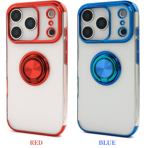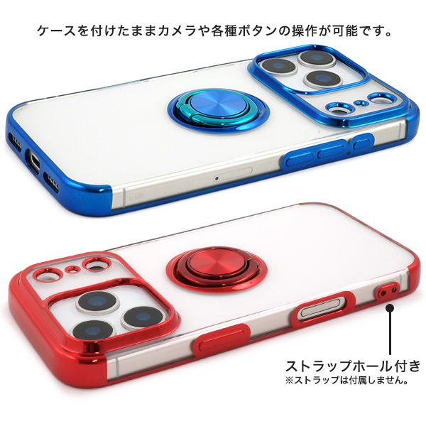 スマホリング付きメタルカラーバンパーソフトクリアケース