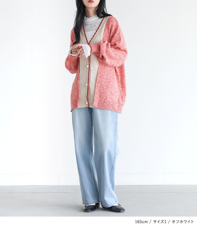 | staff:T/159cm B77 W58 H91 【普段着用】 Tops:S/M Bottoms: M/L | 【1】 袖丈:指の真ん中位 着丈:ヒップ真ん中より下位 腕周り:ややゆったり バスト:ややゆったり 全体:ジャスト 袖がフレアなのでお洒落に重ね着が楽しめそうです。 【2】 袖丈:指先が少し見える位 着丈:ヒップ下少し見える位 腕周り:ゆったり バスト:ゆったり 全体:ややゆったり レースですがちくちくせず着やすいです。 私の場合は、1を選びます。 |